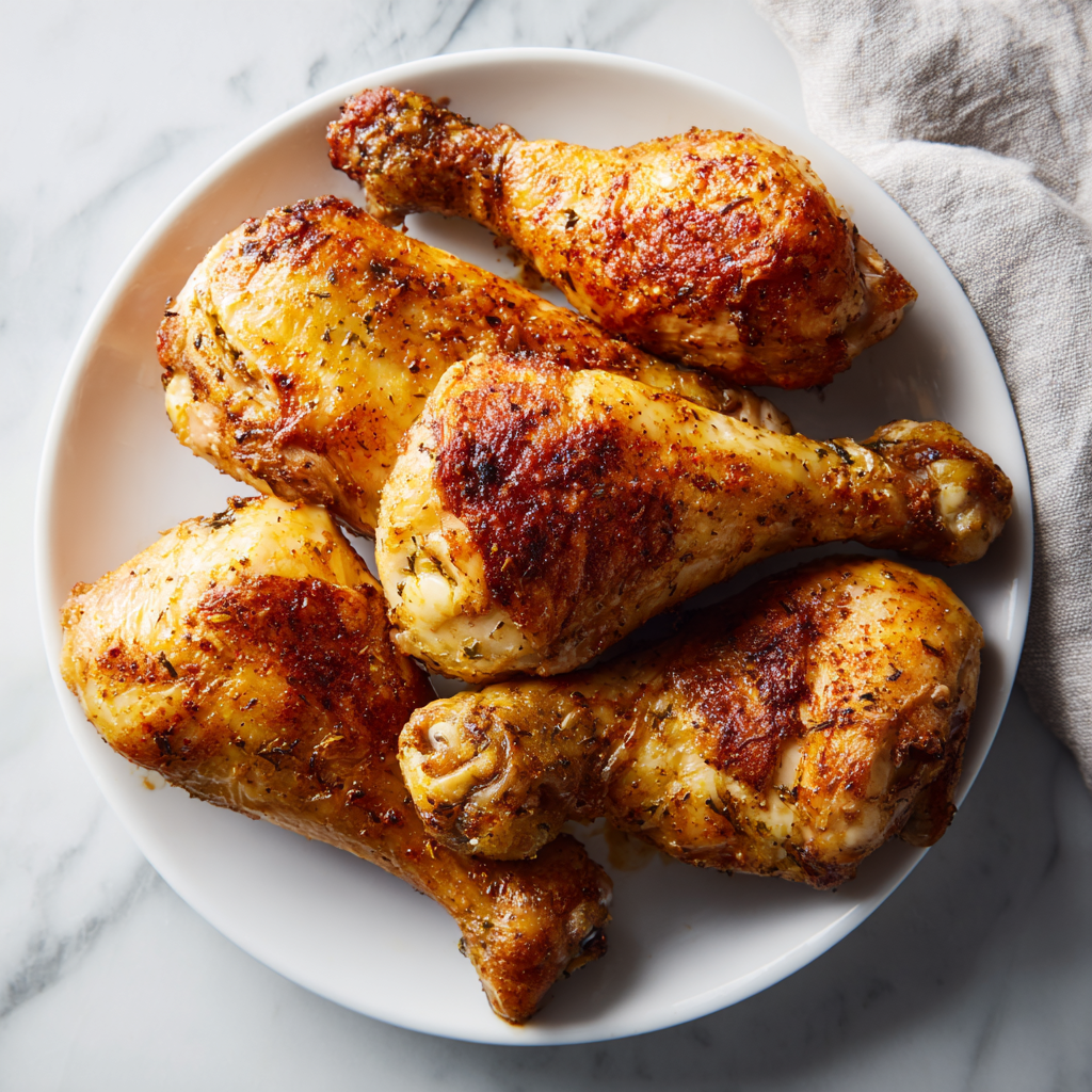 Easy oven-baked chicken legs with perfectly crispy skin and juicy, flavorful meat using simple pantry spices.