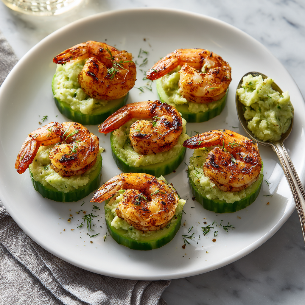 If you’re looking for a fresh, healthy, and flavor-packed appetizer that looks impressive but is incredibly easy to make, these Blackened Shrimp Avocado Cucumber Bites are exactly what you need. This recipe combines juicy blackened shrimp, creamy avocado, and crisp cucumber slices into the perfect bite-sized appetizer that’s low carb, gluten-free, and full of bold flavor.