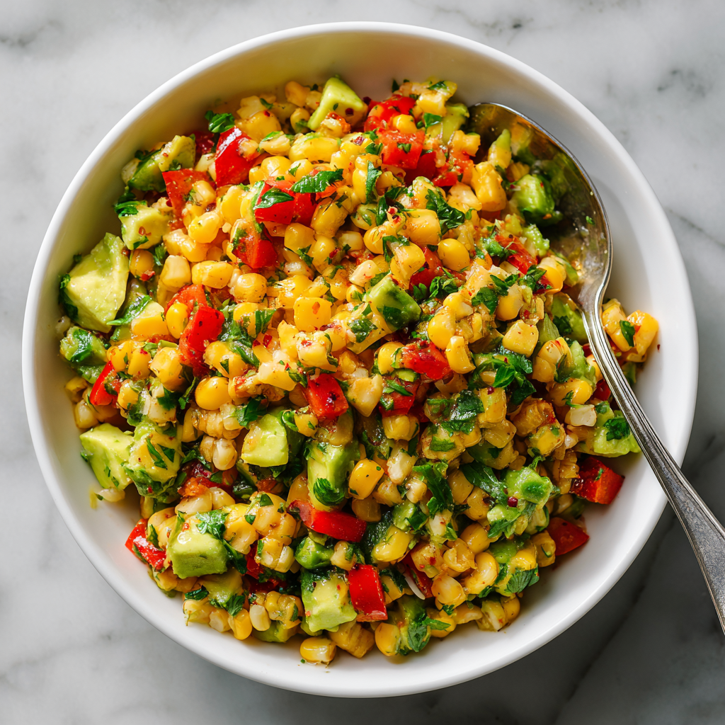 The combination of creamy avocado, sweet corn, crunchy vegetables, and bright lime juice creates a perfect balance of flavors and textures. It’s fresh, satisfying, and naturally colorful, making it as visually appealing as it is delicious.