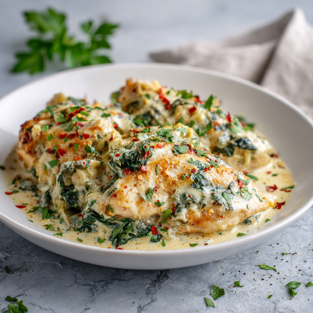 Creamy Spinach Artichoke Chicken (Easy & High-Protein Dinner)