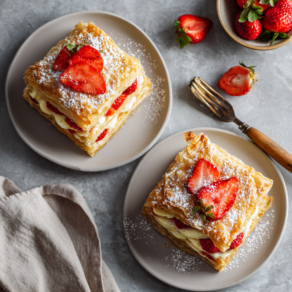 The combination of store-bought puff pastry and fresh ingredients simplifies the process without sacrificing flavor or texture. The flaky pastry contrasts beautifully with the creamy filling and juicy strawberries, creating a balanced dessert that feels both light and indulgent.