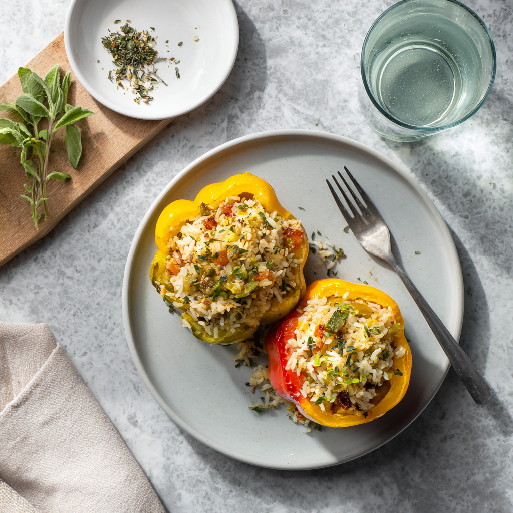 Easy Vegetarian Stuffed Bell Peppers with Rice