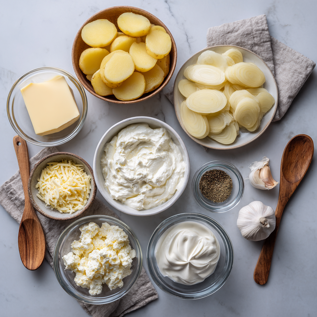 - 2 lbs potatoes (thinly sliced, Yukon Gold or Russet)