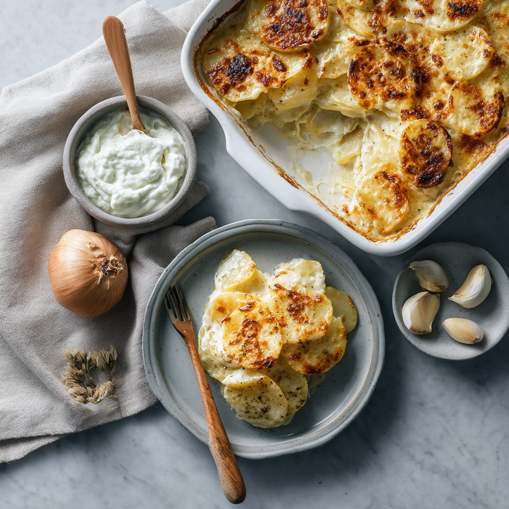 Garlic Scalloped Potatoes with Greek Yogurt (Creamy & Lighter)