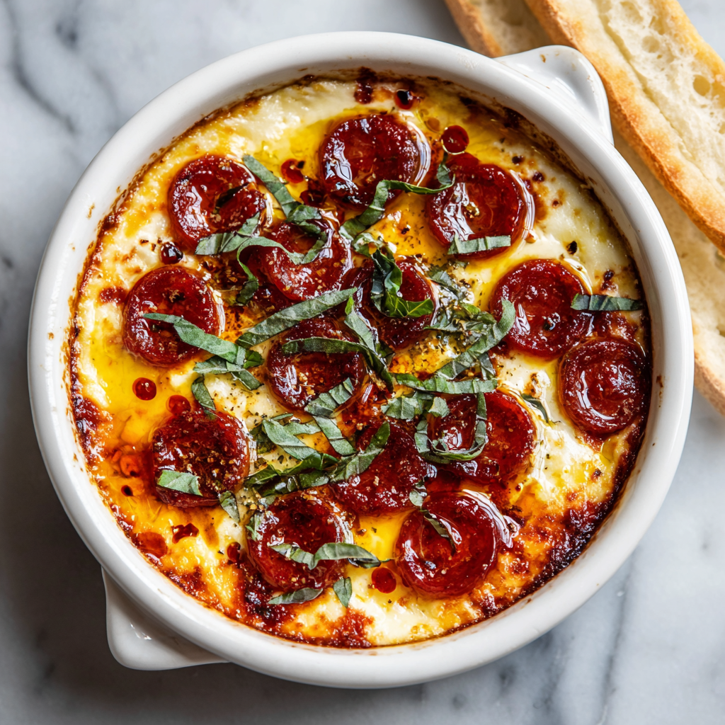 If you love the bold flavors of pizza but want something fun, shareable, and irresistibly cheesy, Hot Honey & Basil Pepperoni Pizza Dip is the perfect recipe. This crowd-pleasing appetizer captures everything you love about pizza—savory marinara, gooey melted cheese, crispy pepperoni, and fragrant basil—then transforms it into a warm, scoopable dip.