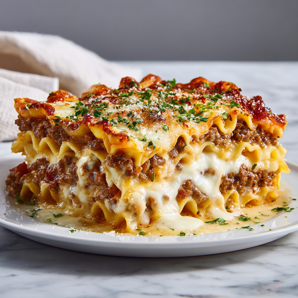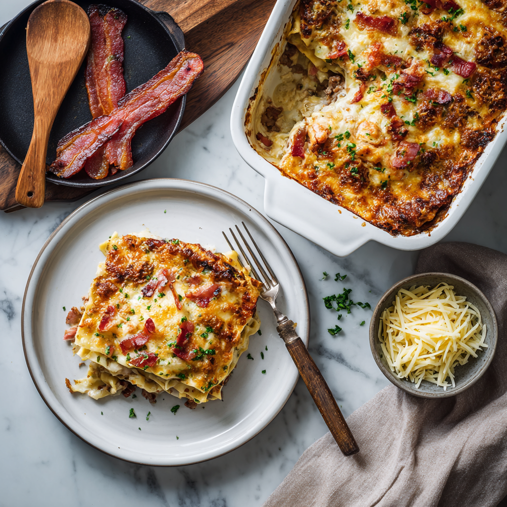 This recipe stands out because it blends the familiar taste of a cheeseburger with the structure of lasagna. The addition of bacon adds a smoky crunch, while the garlic parmesan sauce replaces traditional tomato-based sauces, creating a creamy and luxurious texture.