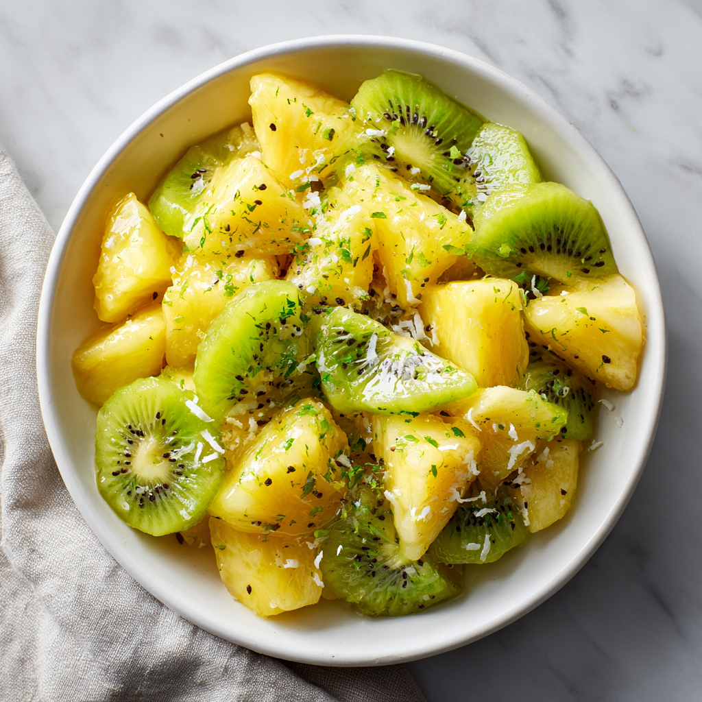 Pineapple is rich in vitamin C and contains bromelain, an enzyme that helps digestion. Kiwi is also very high in vitamin C and fiber, making this salad both delicious and nutritious.