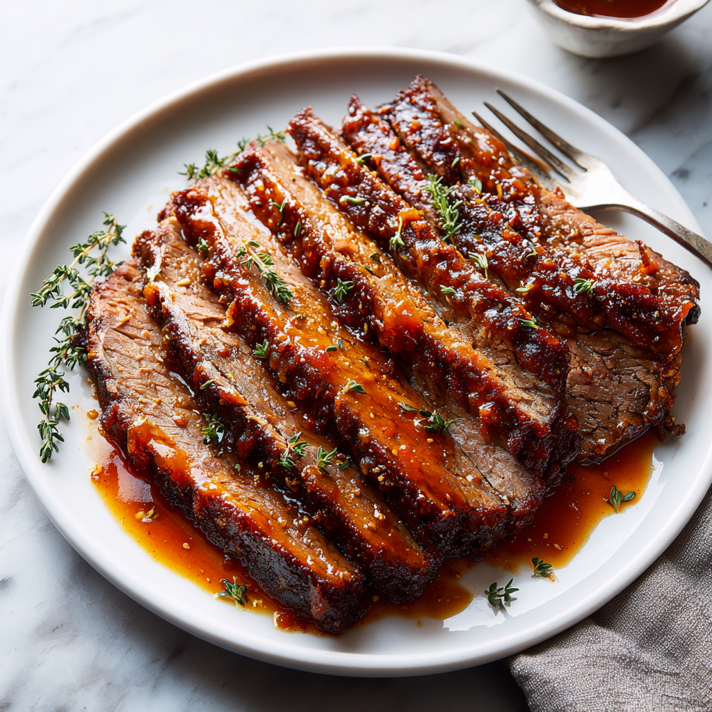 For a stunning presentation, arrange the sliced brisket on a large platter and spoon the sauce over the top. Garnish with fresh herbs such as thyme or parsley for a pop of color.