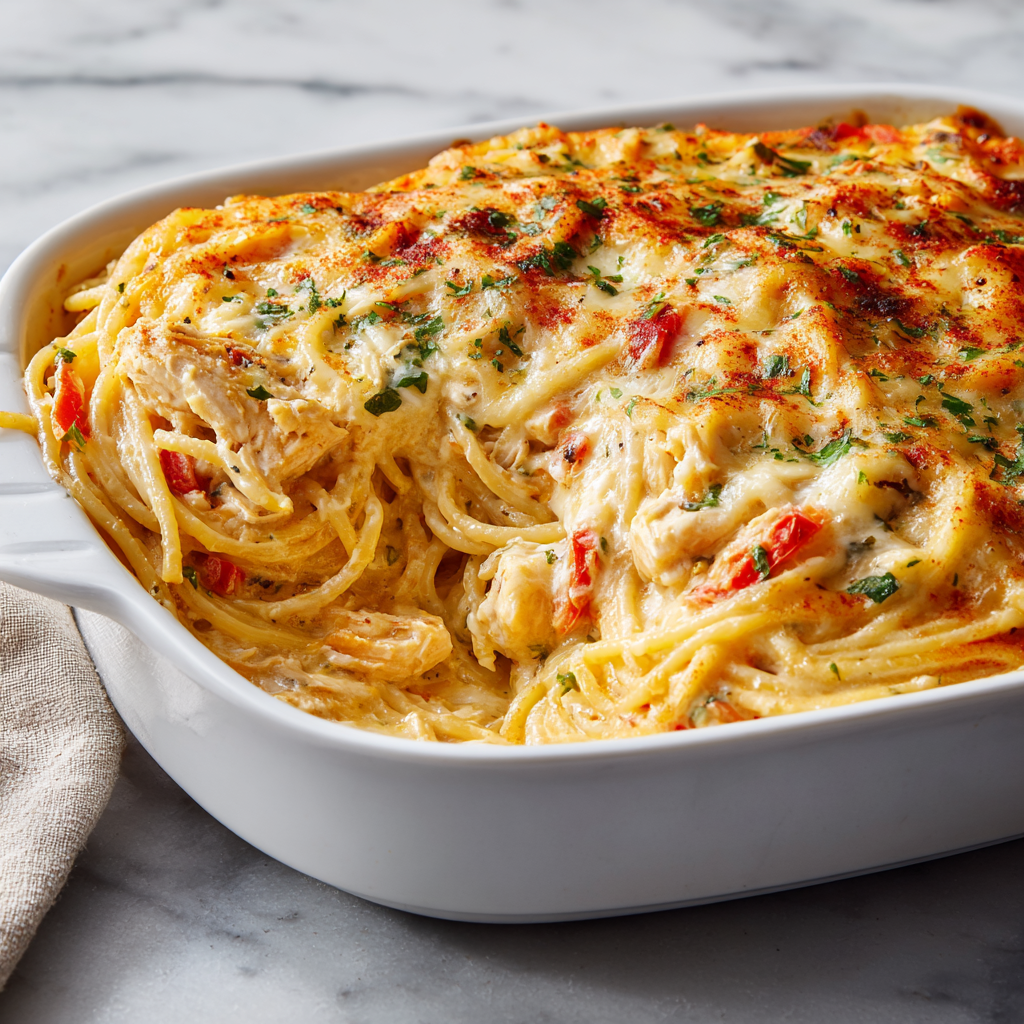 Spicy Southern Cheesy Chicken Spaghetti Casserole (Ultimate Comfort Food)