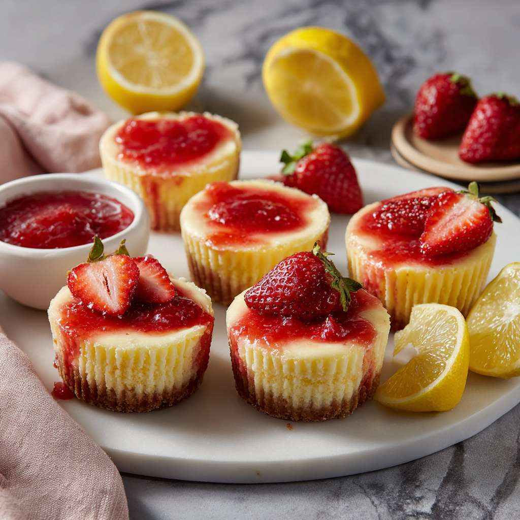 Strawberry Lemon Mini Cheesecakes (Fresh and Creamy Dessert)